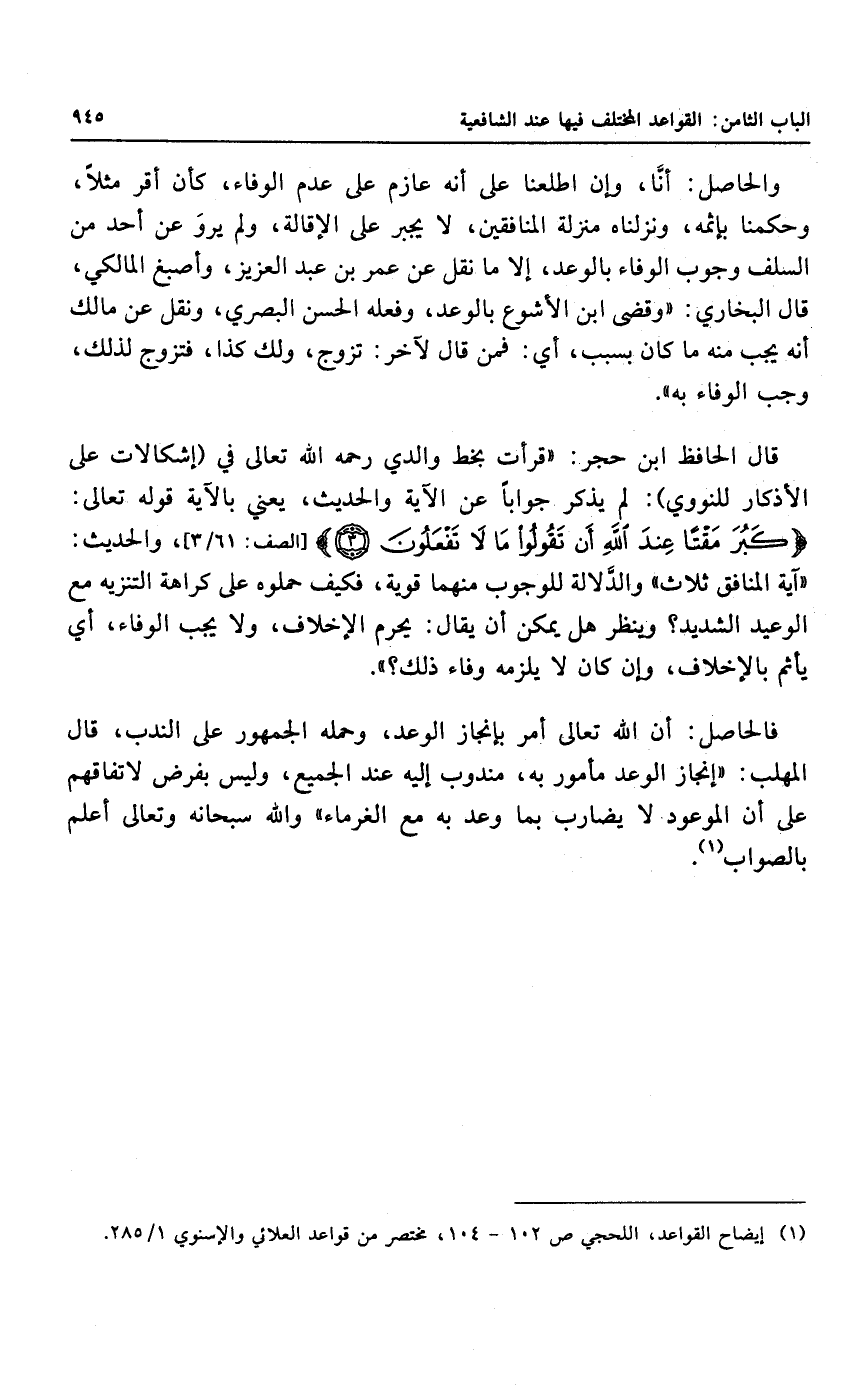 الوعيد الشديد؛ وينظر هل يمكن أن يقال: يحرم الإخلاف، ولا يجب الوفاء، أي يأثم بالإخلاف، وإن كان لا يلزمه وفاء ذلك؟ ".