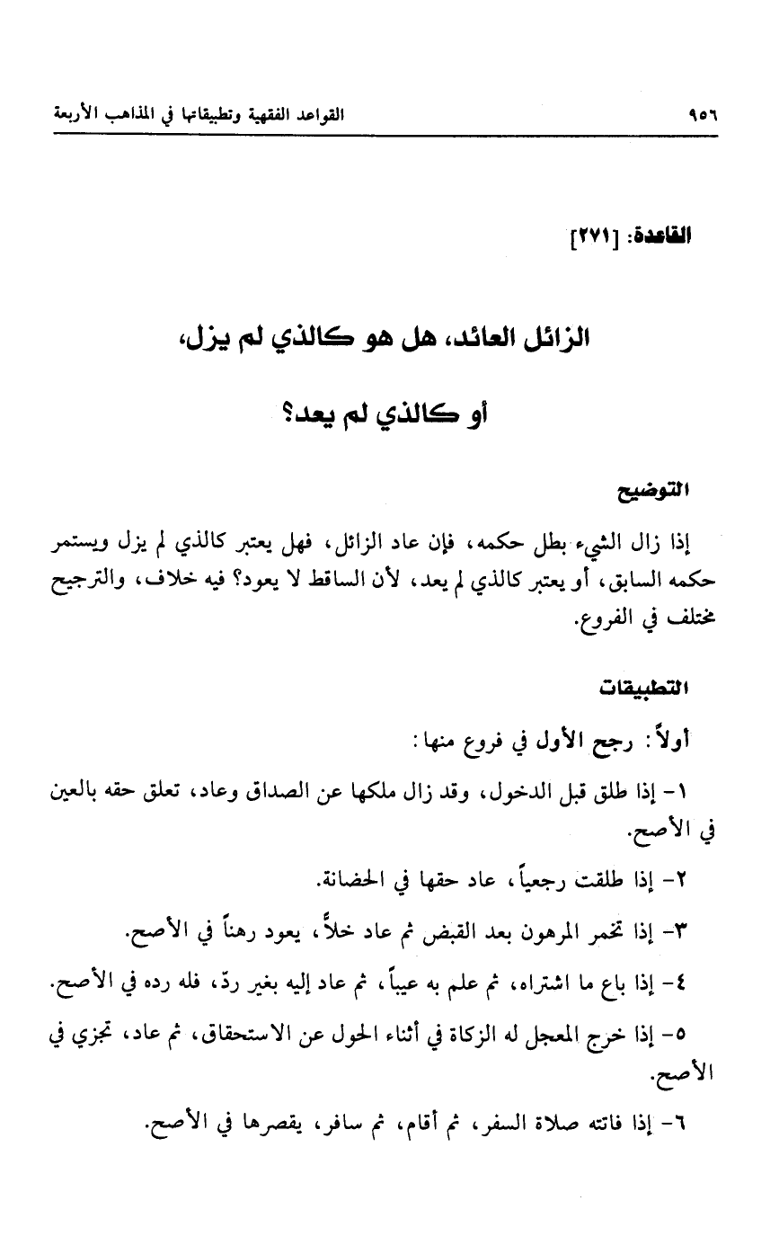إذا زال الشيء - بطل حكمه، فإن عاد الزائل، فهل يعتبر كالذي لم يزل ويستمر حكمه السابق، أو يعتبر كالذي لم يعد، لأن الساقط لا يعود؟