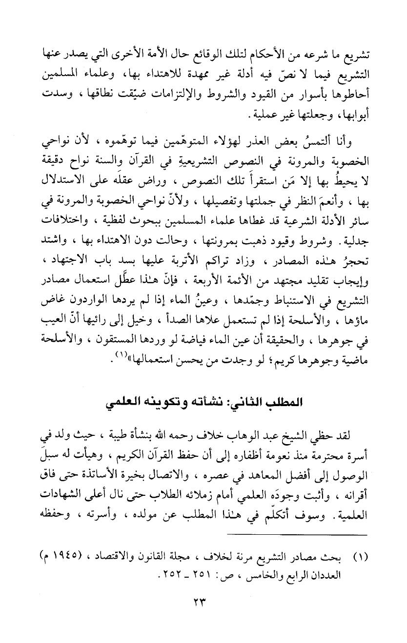 (1) بحث مصادر التشريع مرنة لخلاف، مجلة القانون والاقتصاد، (1945 م)
