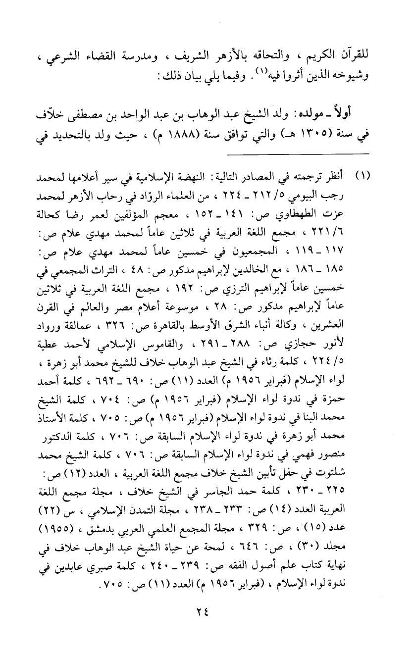 مجلد (30)، ص: 646، لمحة عن حياة الشيخ عبد الوهاب خلاف في