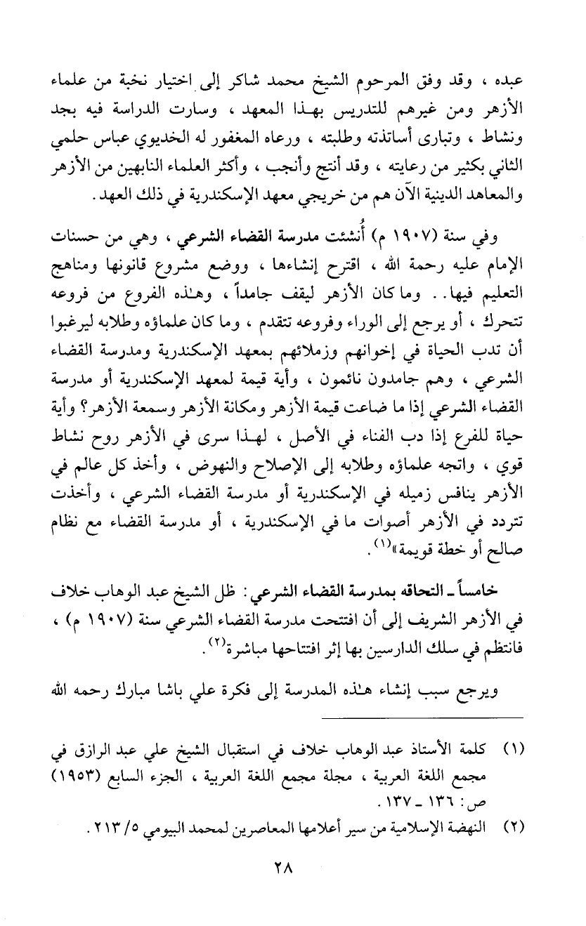 خامساً - التحاقه بمدرسة القضاء الشرعي: ظل الشيخ عبد الوهاب خلاف