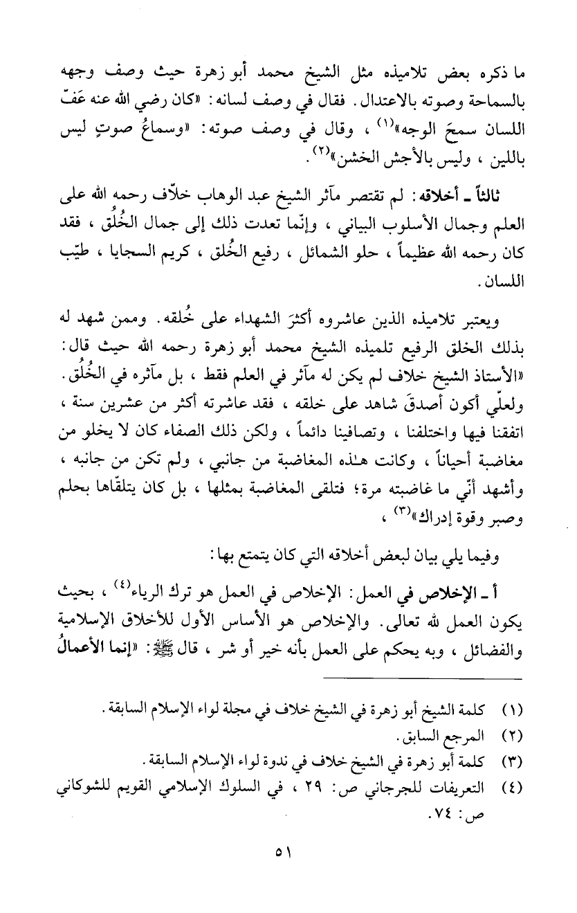 ثالثاً - أخلاؤ4: لم تقتصر مماَثر الشيخ عبد الوهاب خلاّف رحمه اللّه على