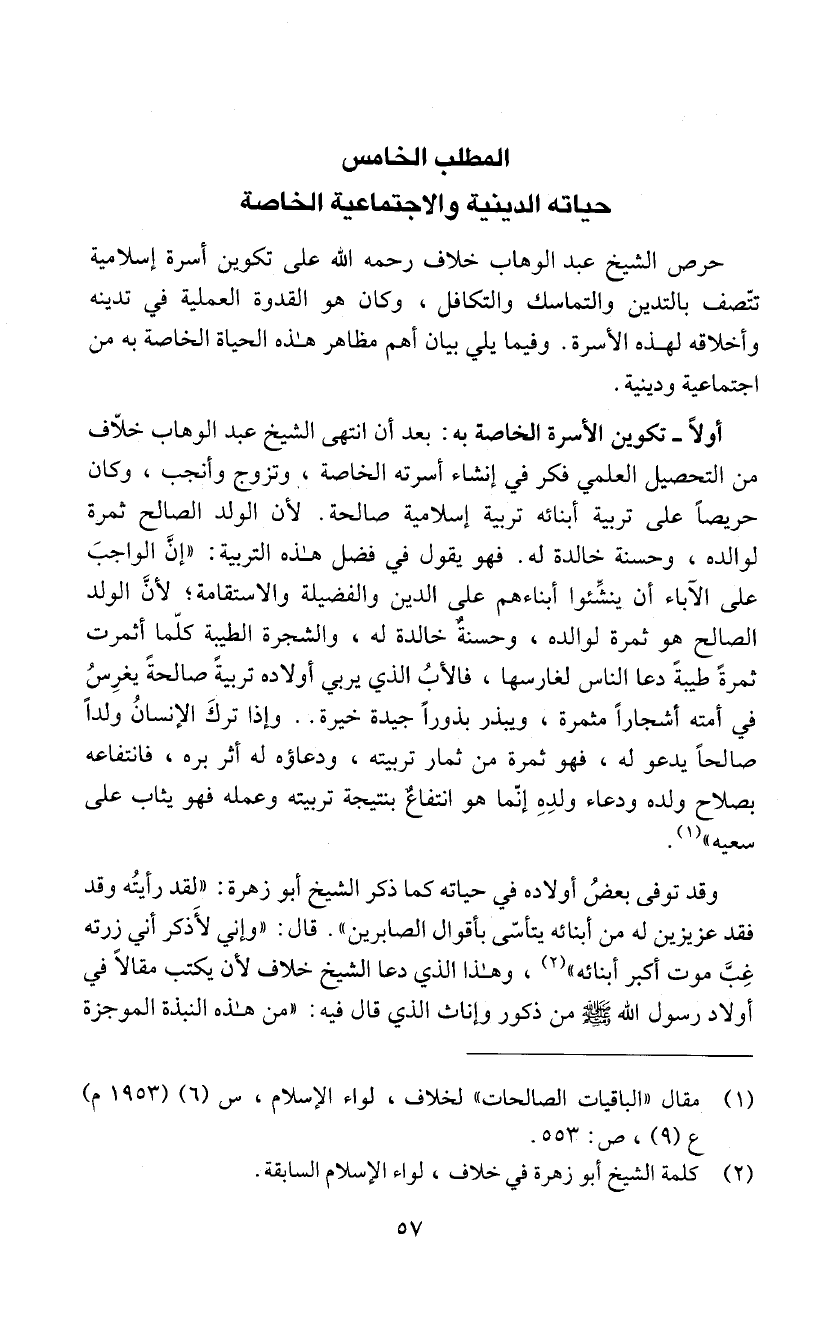 حرص الشيخ عبد الوهاب خلاف رحمه اللّه على تكوين أسرة إسلامية