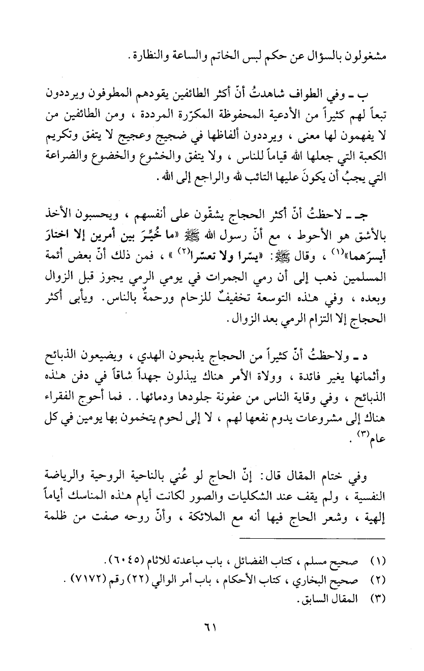 ب - لاحظتُ أنّ أكثر الحجاج يشقّون على أنفسهم، ويحسبون الأخذ