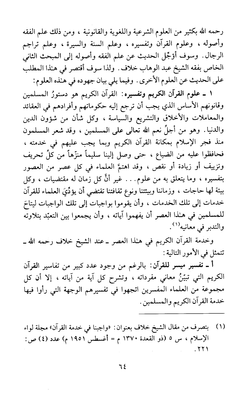 بتصرف من مقال الشيخ خلاف بعنوان: "واجبنا في خدمة القرآن " مجلة لواء