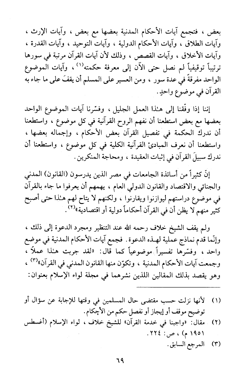كثير منهم لا يظن ان في القران أحكاماً دولية او اقتصادية " (2).