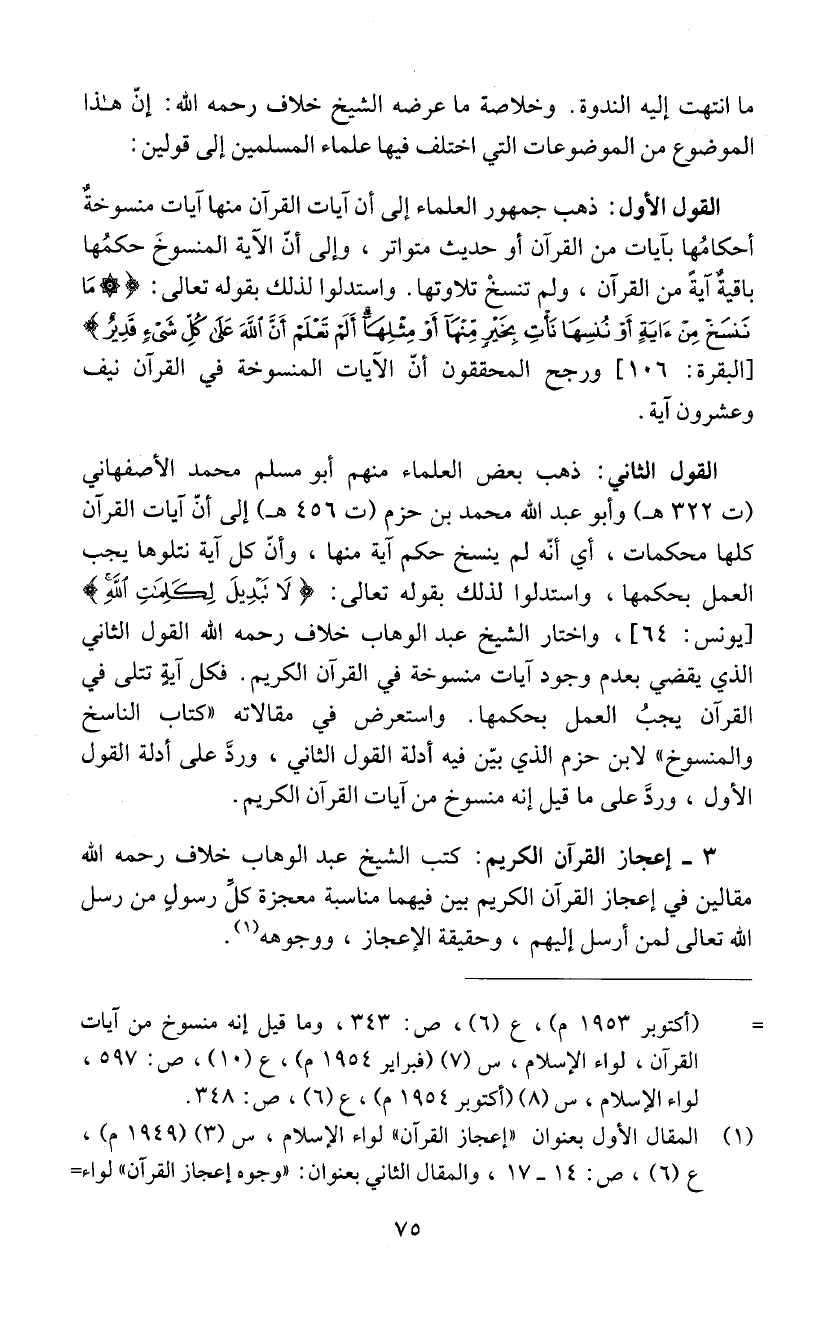 3 - إعجاز القراَن الكريم: كتب الشيخ عبد الوهاب خلاف رحمه اللّه
