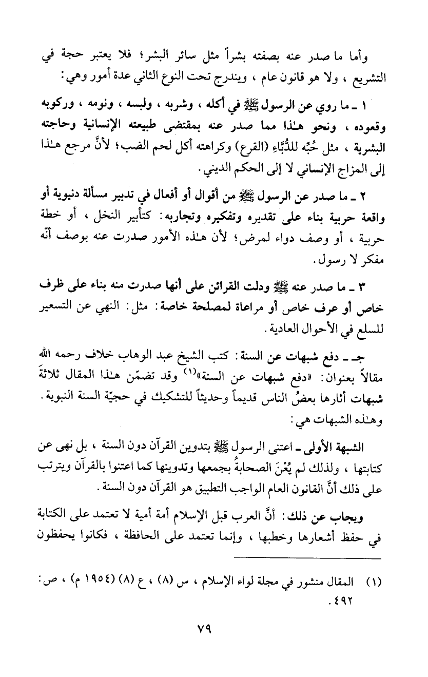ب - دفع شبهات عن السنة: كتب الشيخ عبد الوهاب خلاف رحمه اللّه