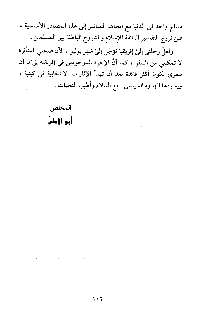 لا تمكنني من السفر، كما أنَّ الإخوة الموجودين في إفريقية يرَوْن أ ن