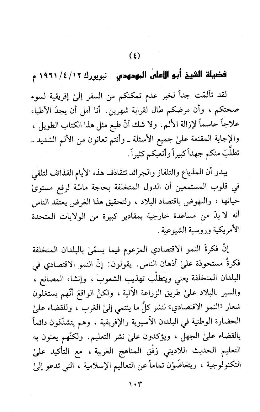 فضيلة الشيخع ابو اكعلى المود! دب نيويورك 4/ 12/ 1961 م