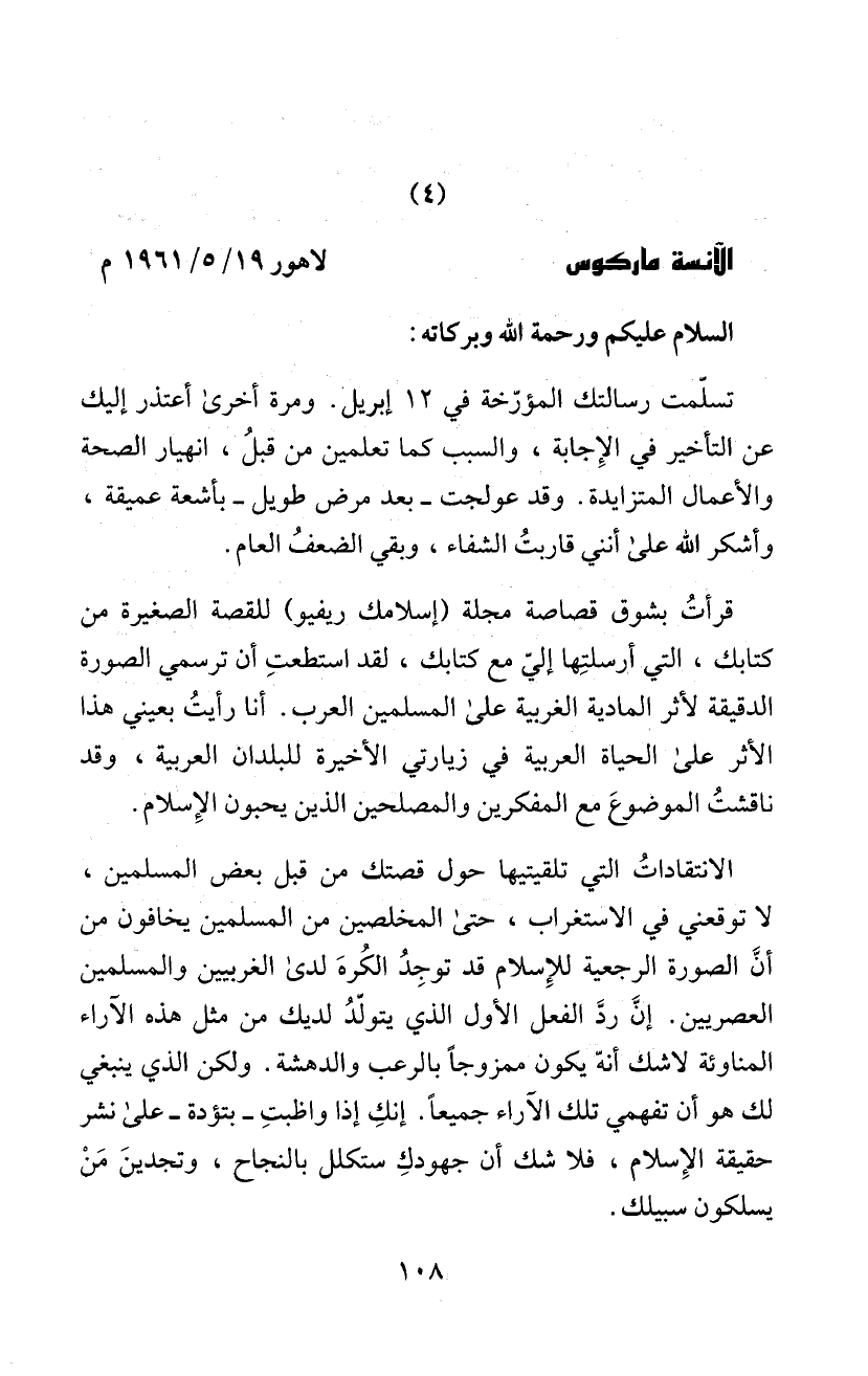 ناقشتُ الموضوعَ مع المفكرين والمصلحين الذين يحبون الإِسلام.