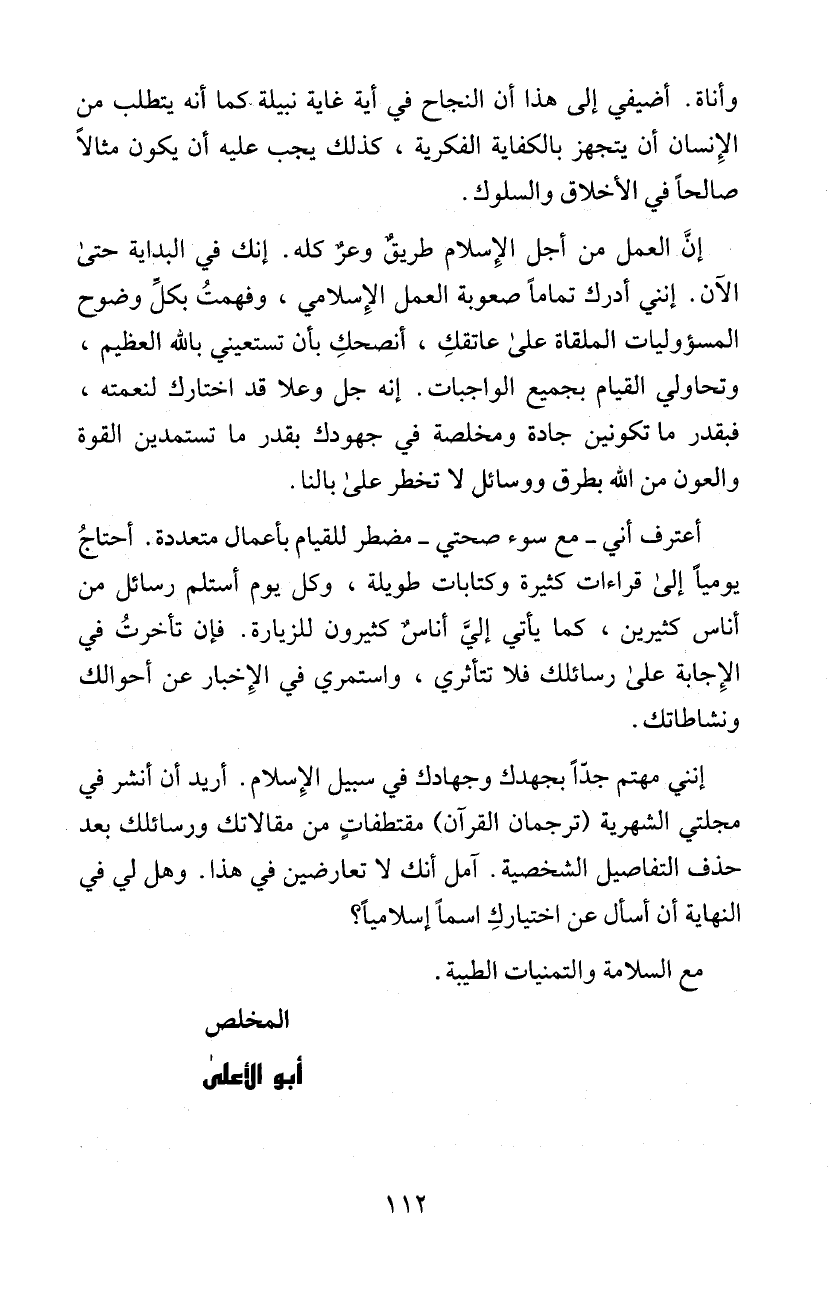 الاَن. إنني أدرك تماماً صعوبة العمل الإِسلامي، وفهمتُ بكلِّ وضوح