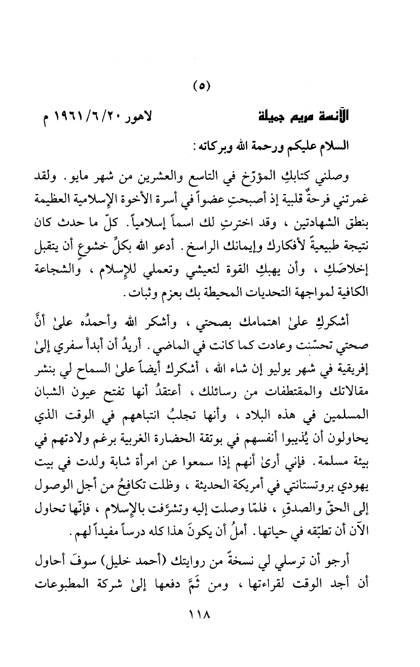 ا اانسة م! يم جميلة لاهور 6/ 20/ 1961 م