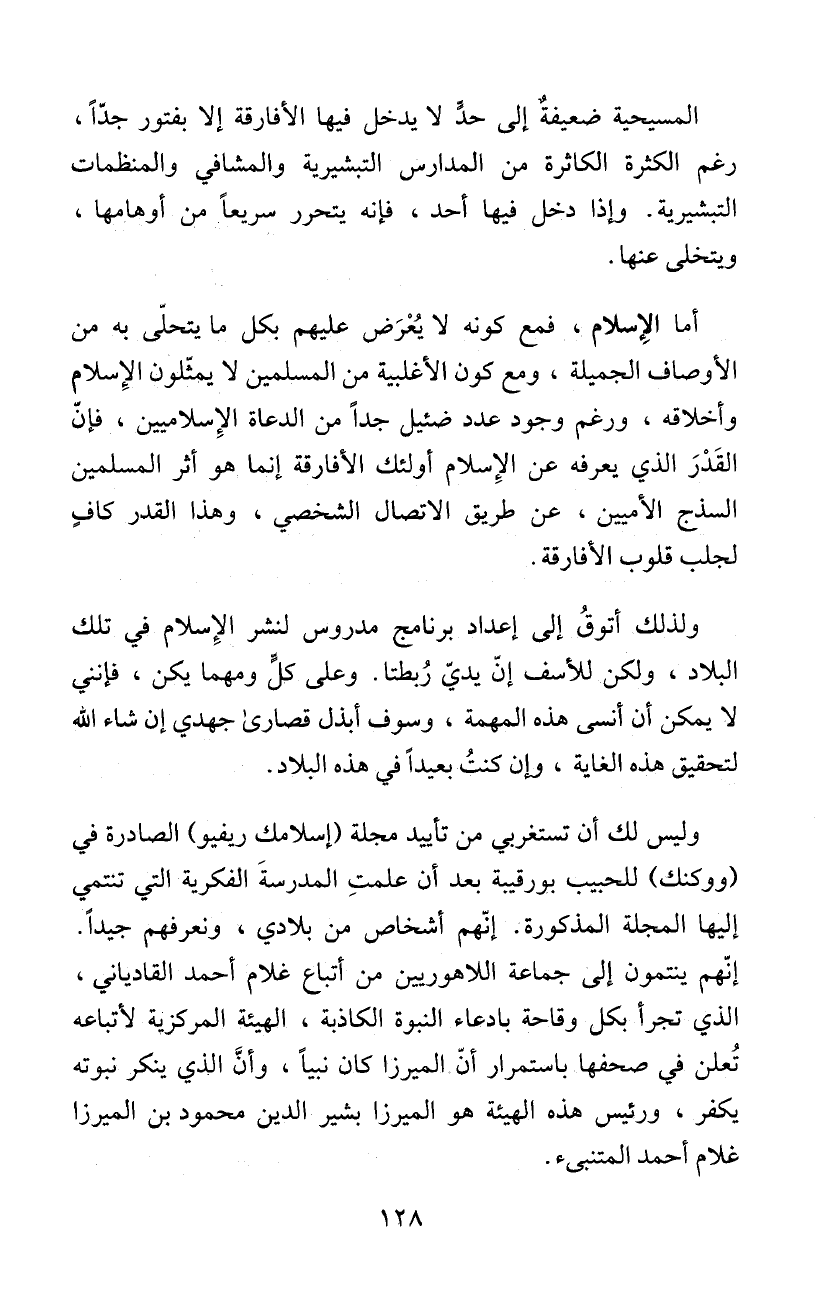 ولذلك أتوقُ إلى إعداد برنامج مدروس لنشر الإِسلام في تلك