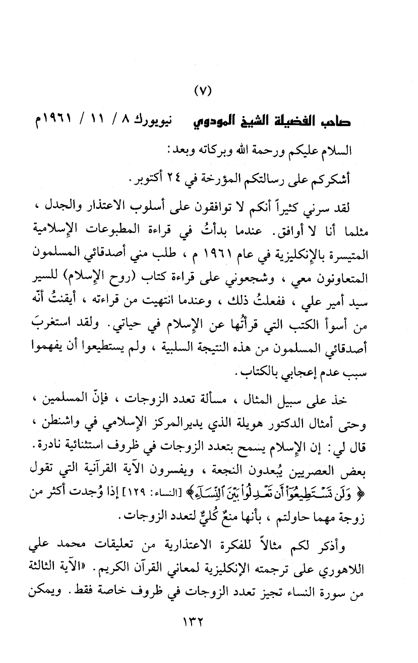 المتيسرة بالإِنكليزية في عام 1961 م، طلب مني أصدقائي المسلمون