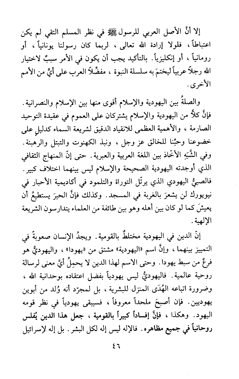 والصلةُ بين اليهودية والإسلام أقوى منها بين الإسلام والنصرانية.