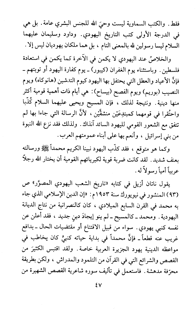 (93) المنشور في نيويورك سنة 1953 م: "إن الدين الإسلامي الذي جاء