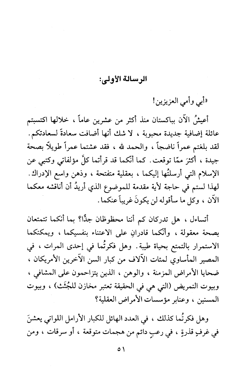 الإسلام التي ارسلتُها إليكما، بعقلية متفتحة، وذهن واسع الإدراك.