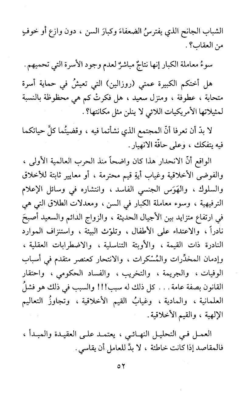 العلمانية، والمادية، وغيابُ القيم الأخلاقية، وتجاوزُ التعاليم