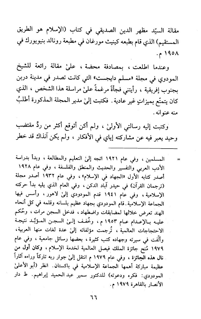 المودوي في مجلة "مسلم دايجست " التي كانت تصدر في مدينة دربن