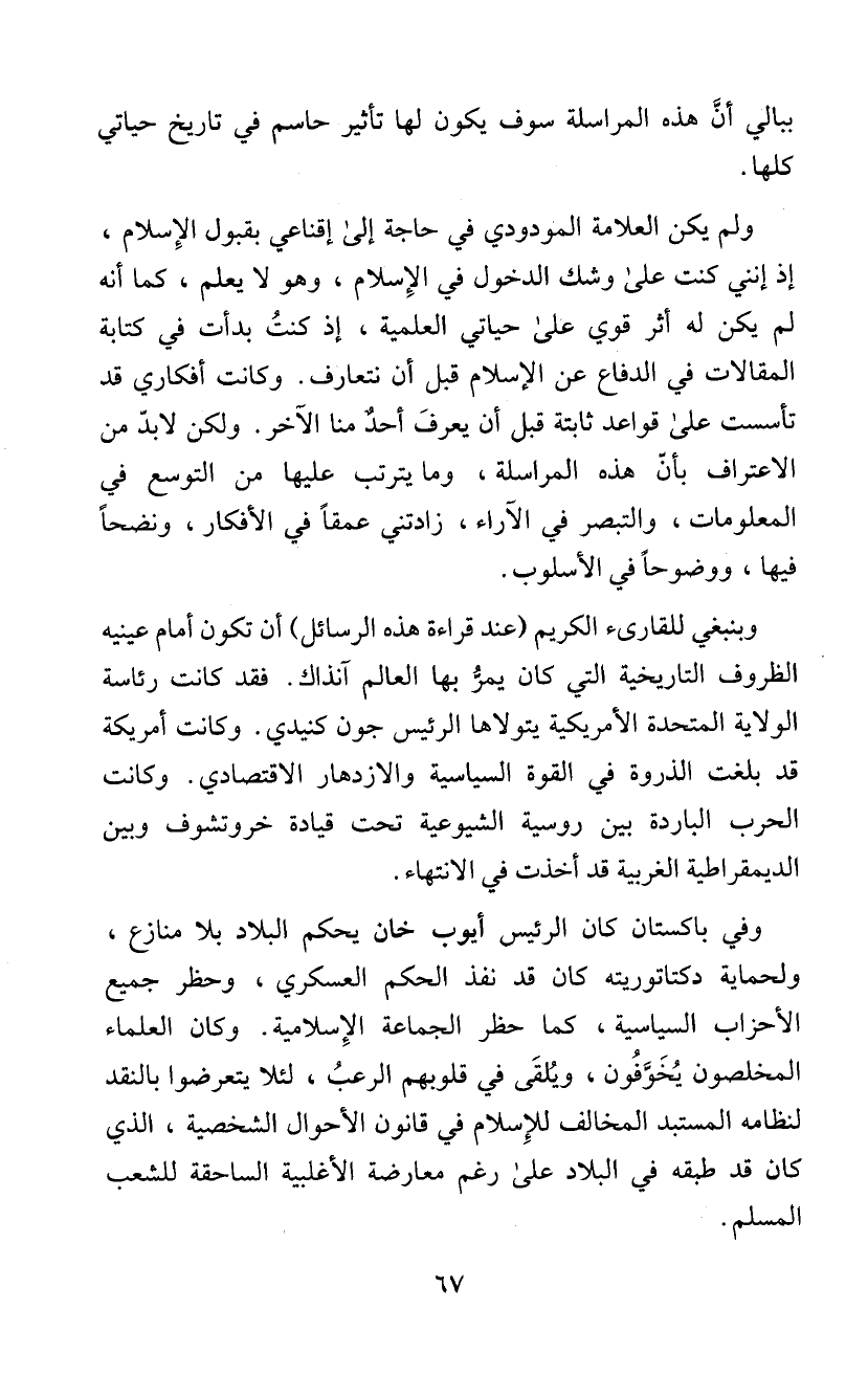 ولم يكن العلامة المودودي في حاجة إلئ إقناعي بقبول الإِسلام،
