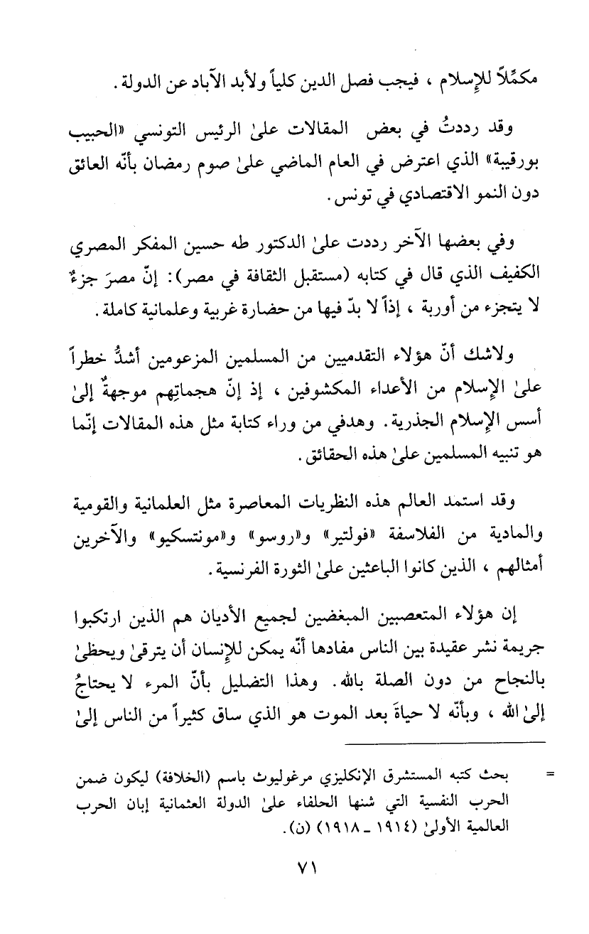 مكمِّلاً للإِسلام، فيجب فصل الدين كلياً ولأبد الآباد عن الدولة.
