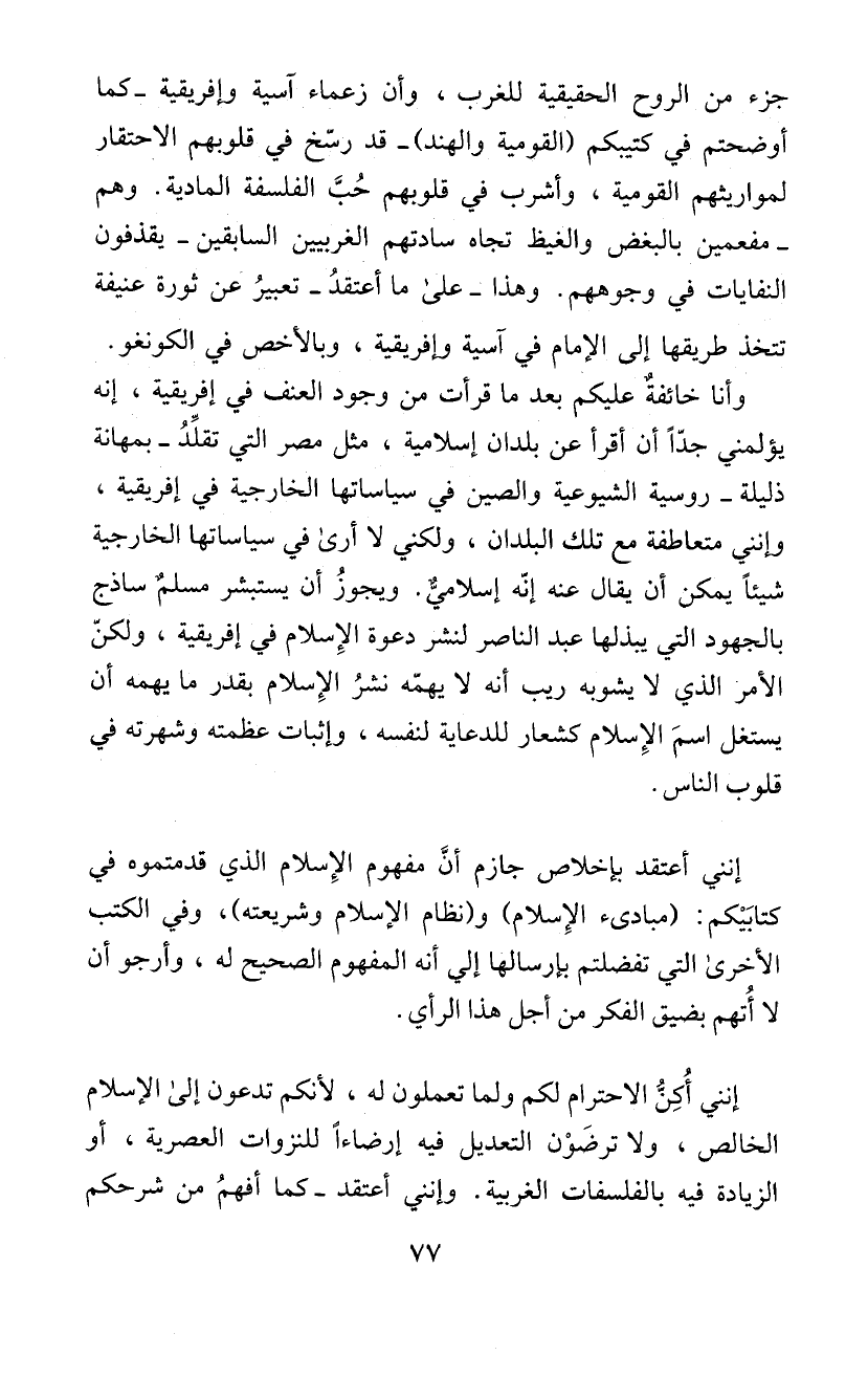 إنني أعتقد بإخلاص جازم انَّ مفهوم الإِسلام الذي قدمتموه في