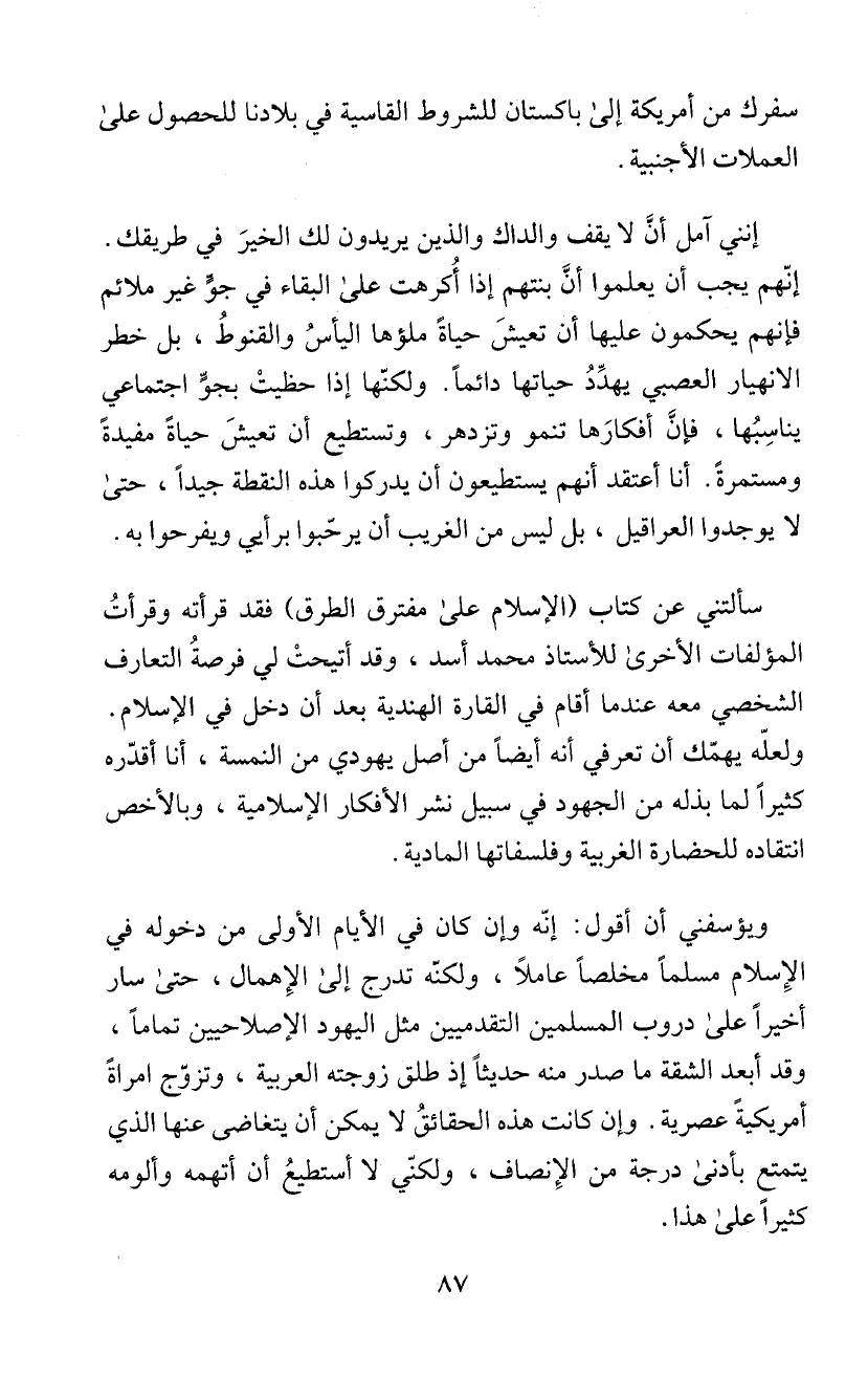 سألتني عن كتاب (الإسلام علئ مفترق الطرق) فقد قرأته وقرأتُ