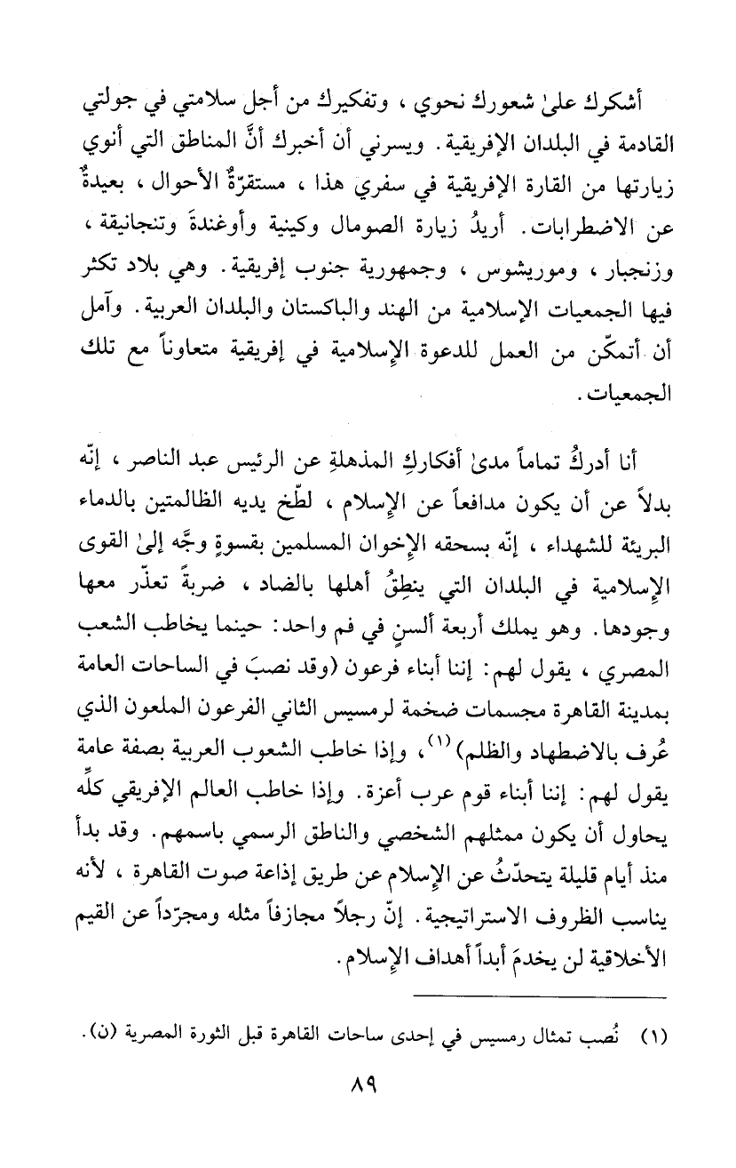 ان اتمكّن من العمل للدعوة الإِسلامية في إفريقية متعاوناً مع تلك