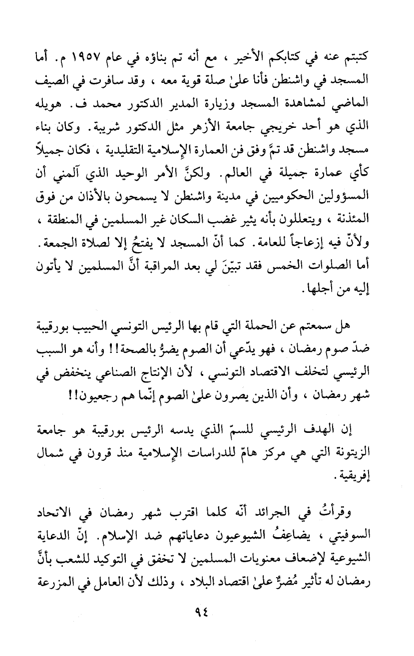 المسجد في واشنطن فأنا علئ صلة قوية معه، وقد سافرت في الصيف