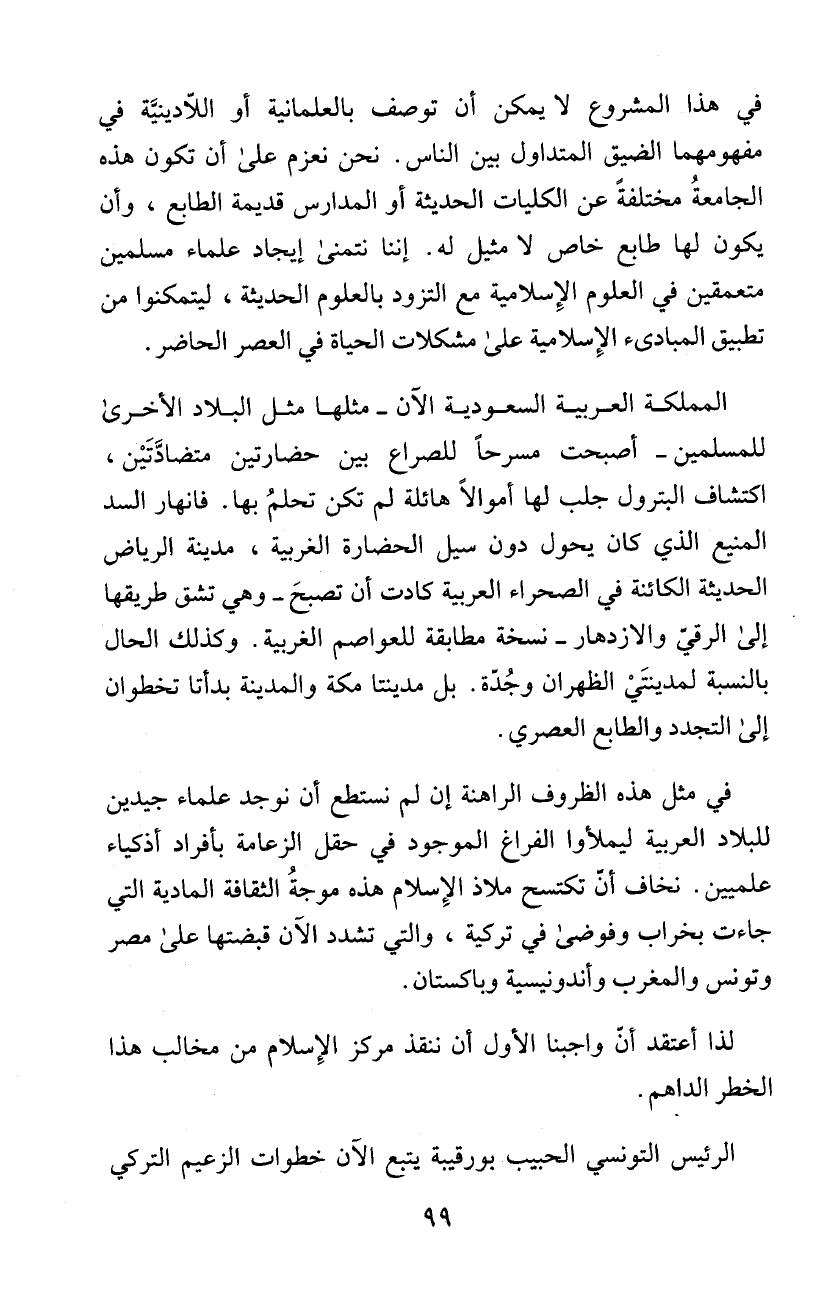 لذا أعتقد أنّ واجبنا الأول أن ننقذ مركز الإِسلام من مخالب هذا