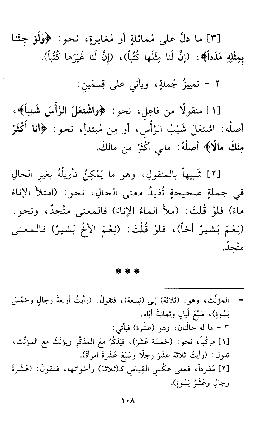 [3] ما دلَّ على مُماثلةٍ أو مُغايرةٍ، نحو: {وَلَوْ جِئْنا بِمِثْلِهِ مَدَداً}، (إنَّ لَنا مِثْلَها كُتُباً)، (إِنَّ لَنا غَيْرَها كُتُباً).