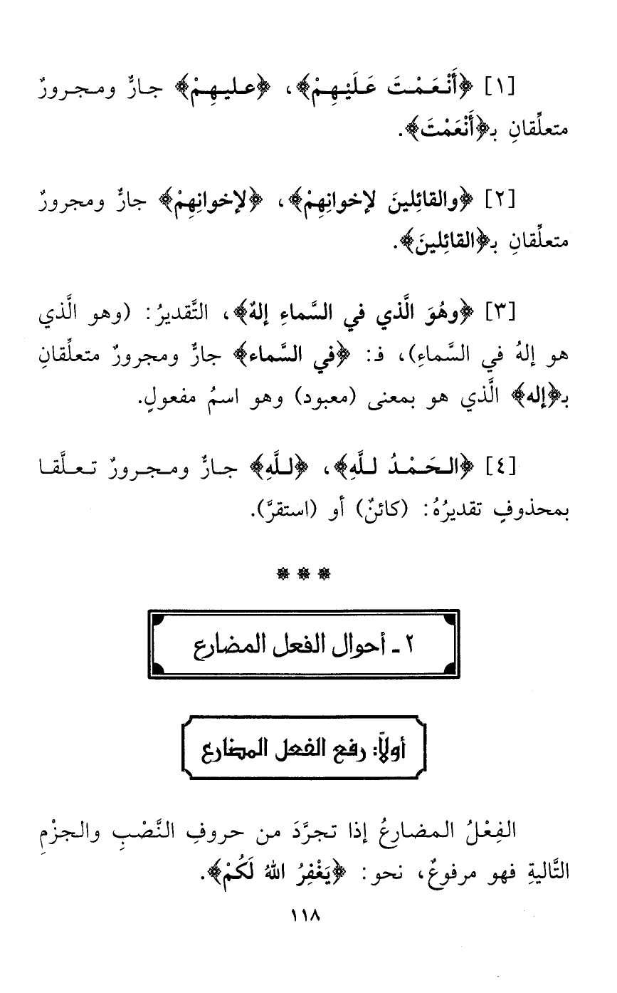 [4] {الحَمْدُ للهِ}، {للهِ} جارٌّ ومجرورٌ تعلَّقا بمحذوفٍ تقديرُهُ: (كائنٌ) أو (استقرَّ).