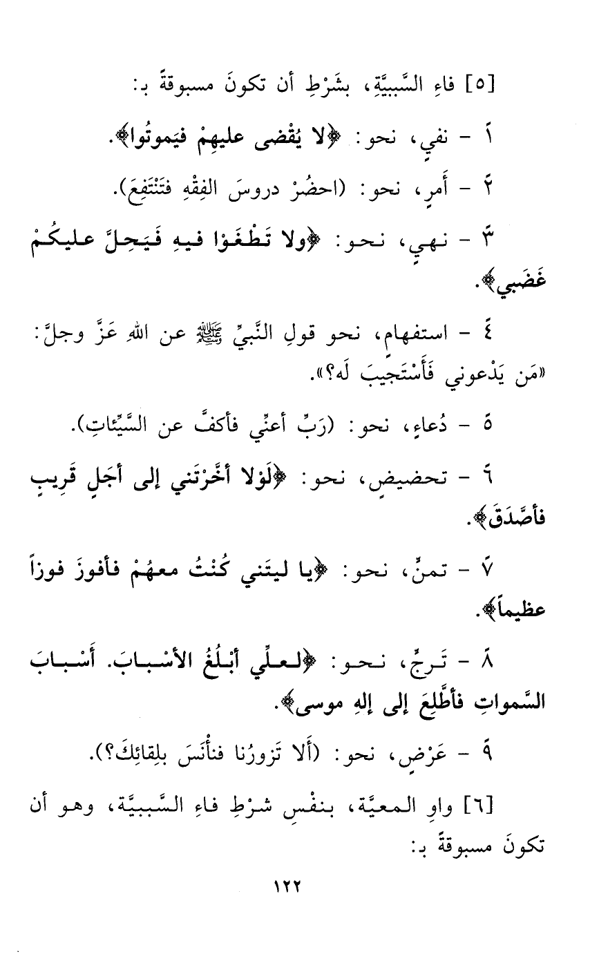[5] فاءِ السَّببيَّةِ، بشَرْطِ أن تكونَ مسبوقةً بـ: