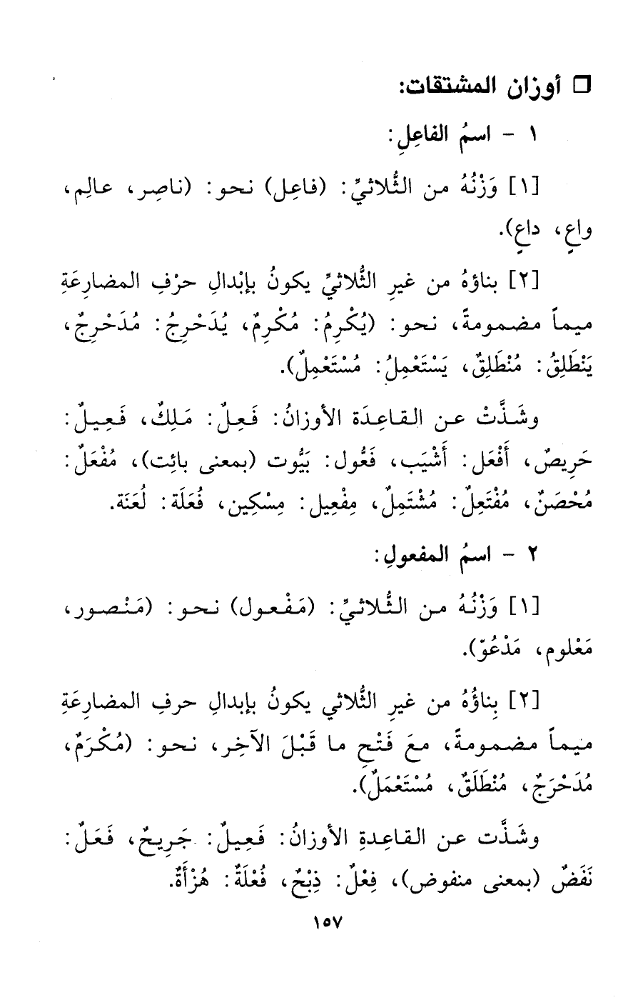 [1] وَزْنُهُ من الثُّلاثيِّ: (فاعِل) نحو: (ناصِر، عالِم، واعٍ، داعٍ).