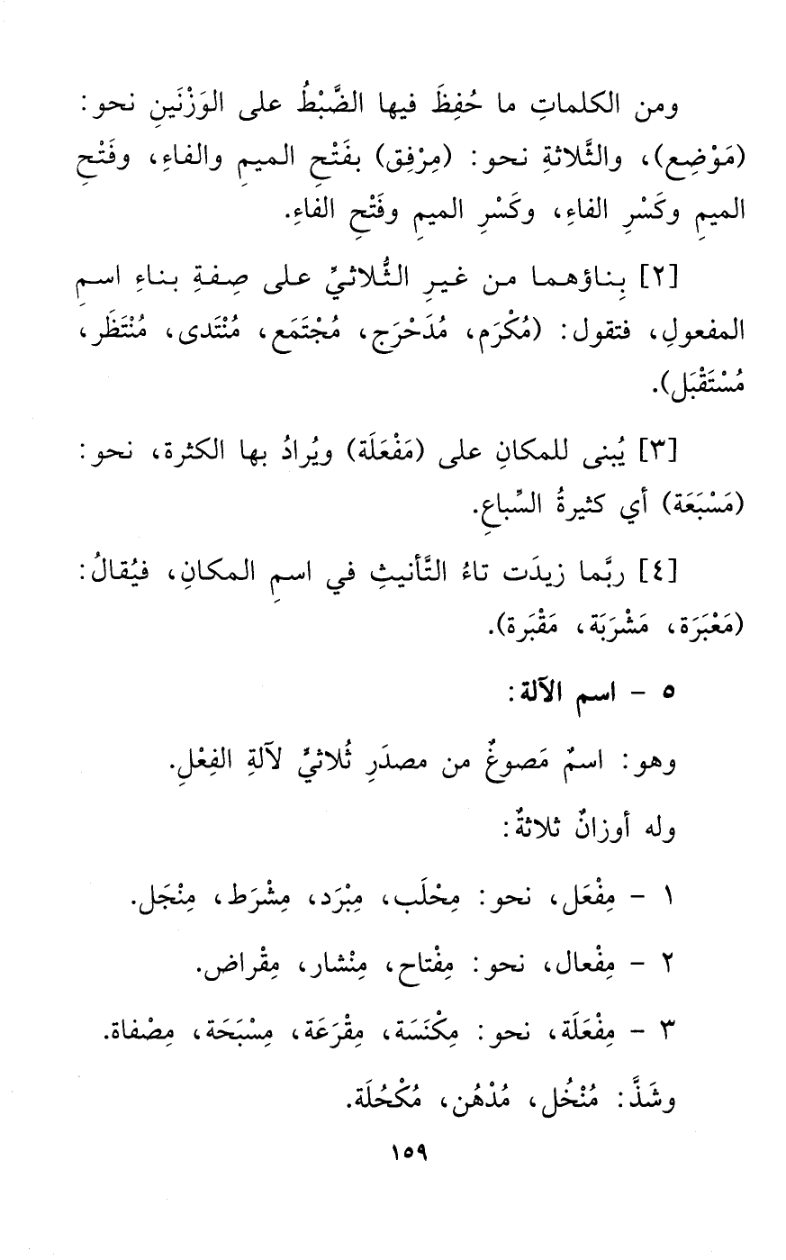 [3] يُبنى للمكانِ على (مَفْعَلَة) ويُرادُ بها الكثرة، نحو: (مَسْبَعَة) أي كثيرةُ السِّباعِ.