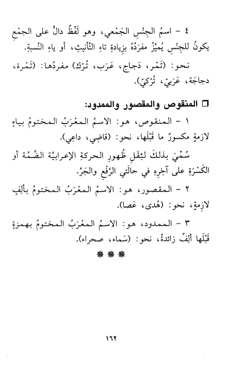 2 - المقصور، هو: الاسمُ المعْرَبُ المختومُ بألِفٍ لازِمةٍ، نحو: (هُدى، عَصا).
