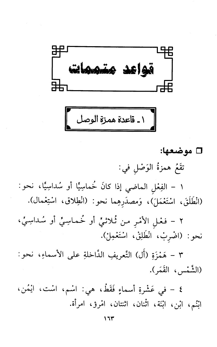 1 - الفِعْلِ الماضي إذا كانَ خُماسِيًّا أو سُداسِيًّا، نحو: (انْطَلَقَ، اسْتَعْمَلَ)، وَمصدَرِهِما نحو: (انْطِلاق، استِعْمال).
