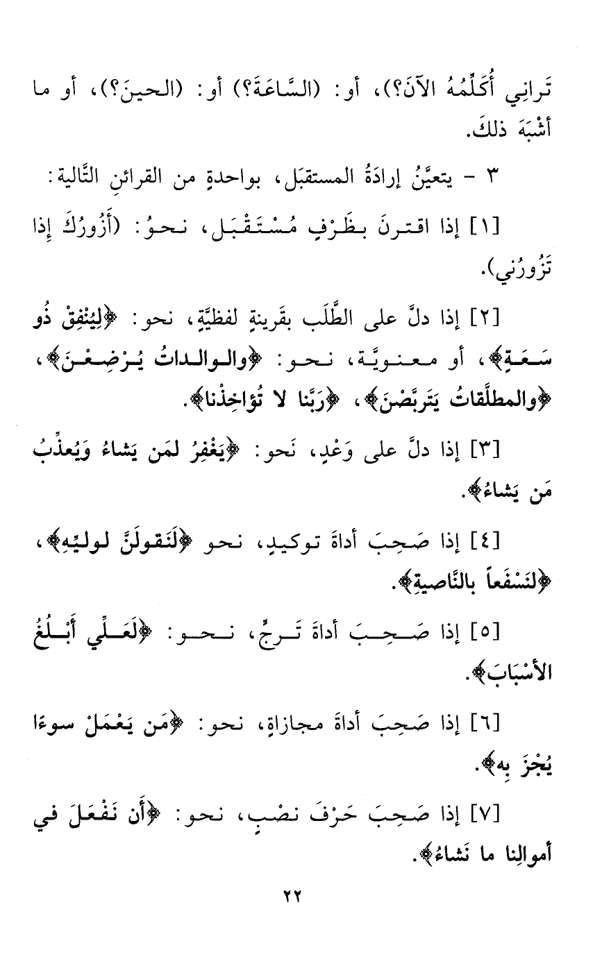 3 - يتعيَّنُ إرادَةُ المستقبَل، بواحدةٍ من القرائنِ التَّالية: