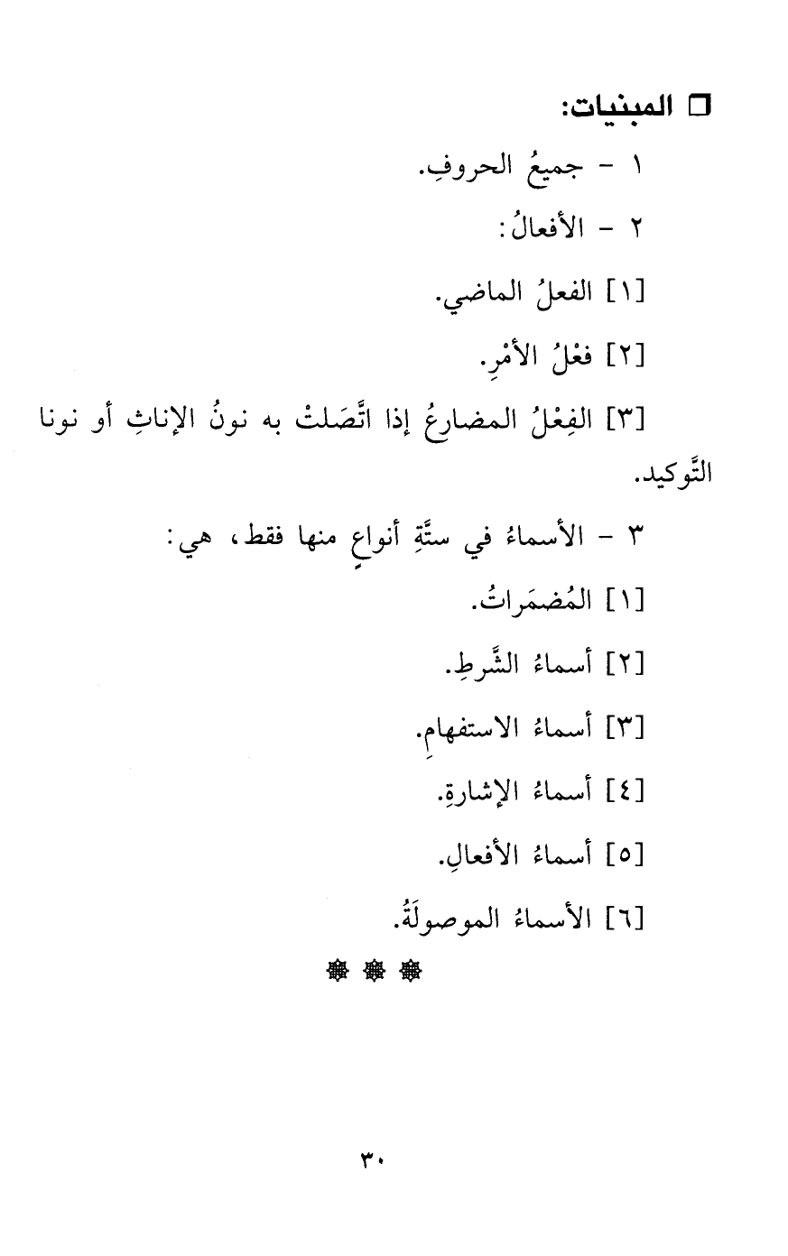 3 - الأسماءُ في ستَّةِ أنواعٍ منها فقط، هي: