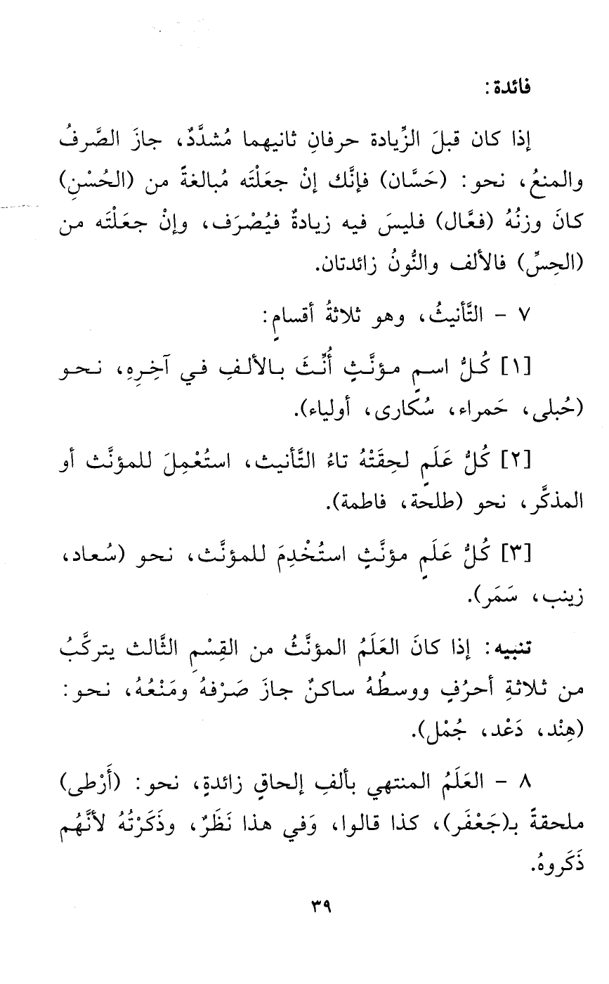 [2] كُلُّ عَلَمٍ لحِقَتْهُ تاءُ التأنيث، استُعْمِلَ للمؤنَّث أو المذكَّر، نحو (طلحة، فاطمة).