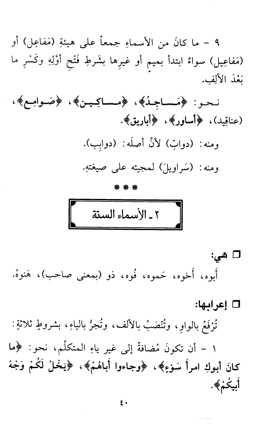 9 - ما كانَ من الأسماءِ جمعاً على هيئةِ (مَفاعِل) أو (مَفاعِيل) سواءٌ ابتدأ بميمٍ أو غيرِها بشَرطِ فَتْحِ أوَّلِهِ وكَسْرِ ما بَعْدَ الألِفِ.