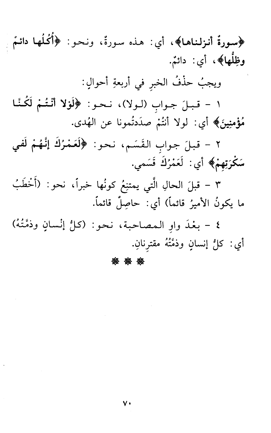 ويجبُ حذْفُ الخبرِ في أربعةِ أحوالٍ: