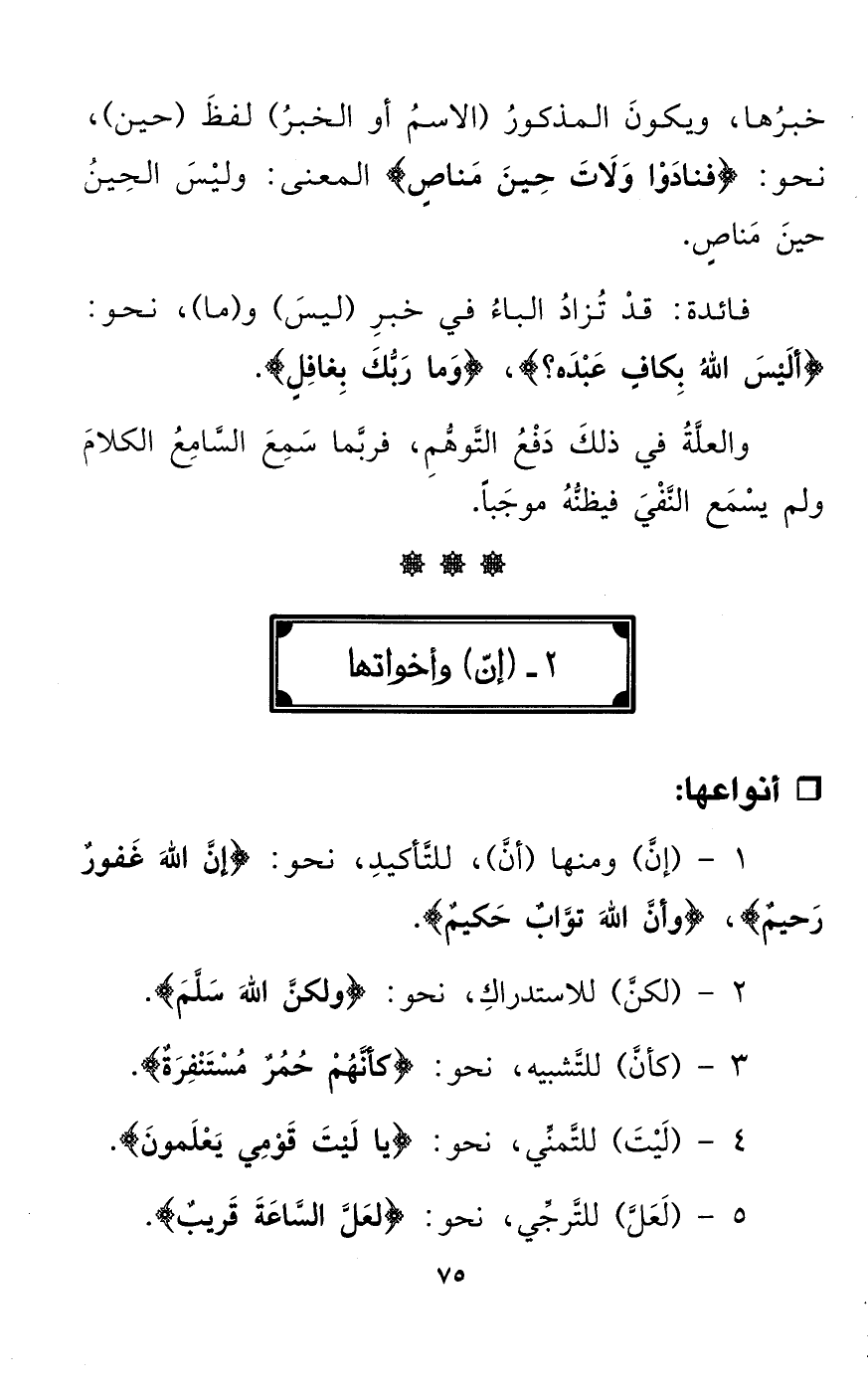 1 - (إنَّ) ومنها (أنَّ)، للتَّأكيدِ، نحو: {إنَّ اللهَ غَفورٌ رَحيمٌ}، {وأنَّ اللهَ توَّابٌ حَكيمٌ}.