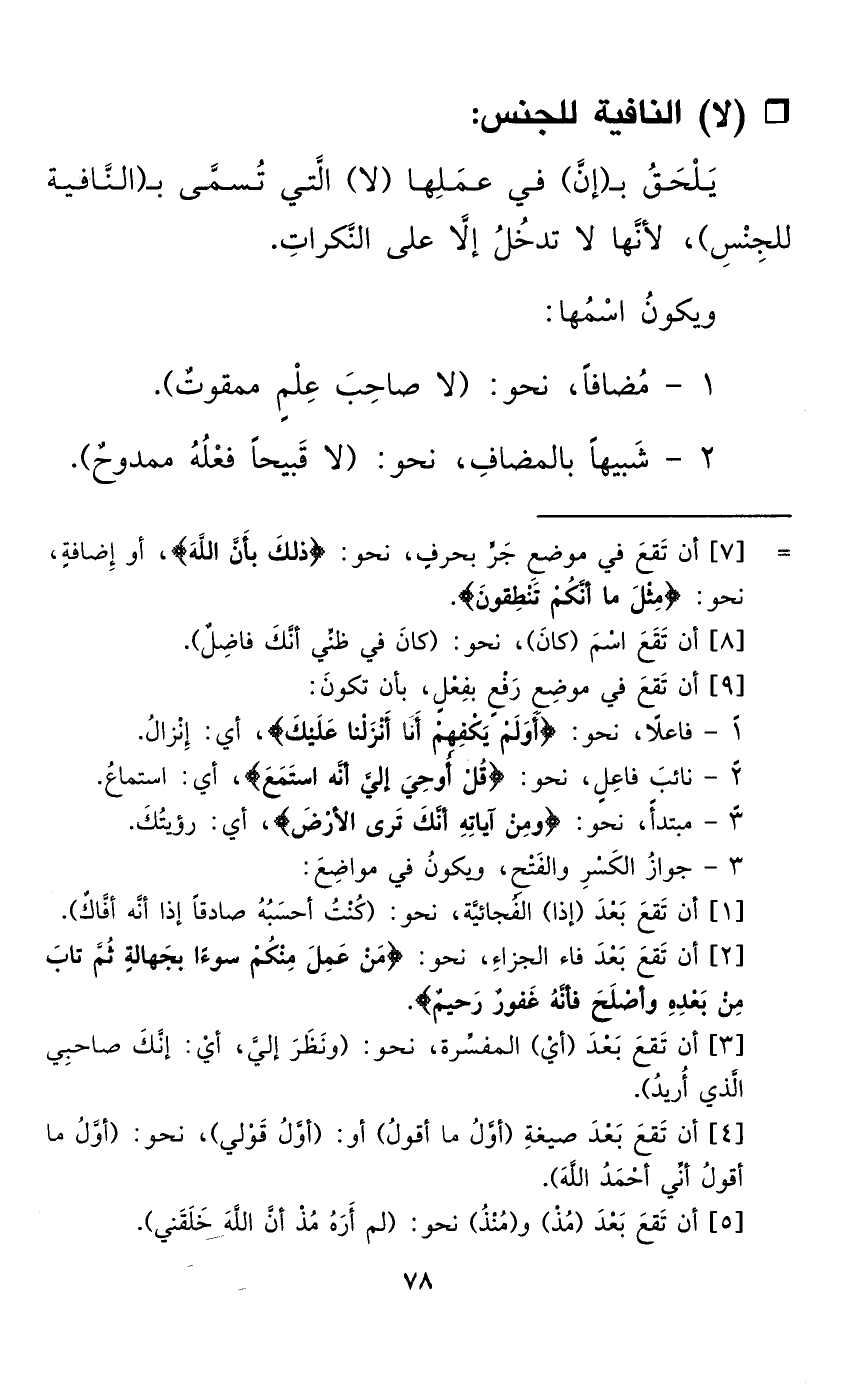 يَلْحَقُ بـ (إنَّ) في عمَلِها (لا) الَّتي تُسمَّى بـ (النَّافية للجِنْسِ)، لأنَّها لا تدخُلُ إلَّا على النَّكراتِ.