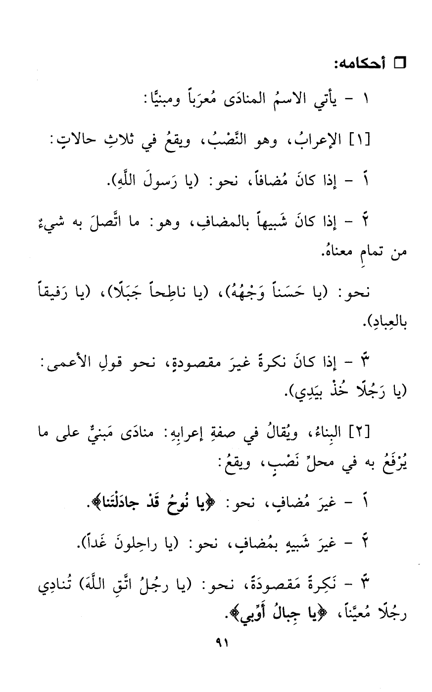1 - غيرَ مُضافٍ، نحو: {يا نُوحُ قَدْ جادَلْتَنا}.