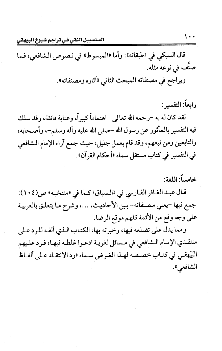 ومما يدلُّ على تضلعه فيها، وخبرته بها، الكتاب الّذي ألفه للرد على منتقدي الإمام الشّافعيّ في مسائل لغوية ادعوا غلطه فيها، فرد عليهم البَيْهقي في كتاب خصصه لهذا الغرض سماه "رد الانتقاد على ألفاظ الشّافعيّ".