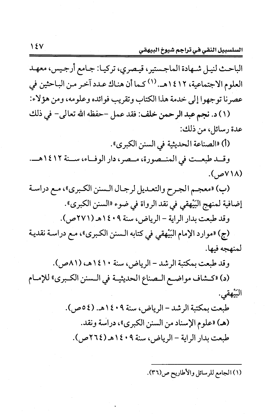 (1) "الصناعة الحديثية في السنن الكبرى".