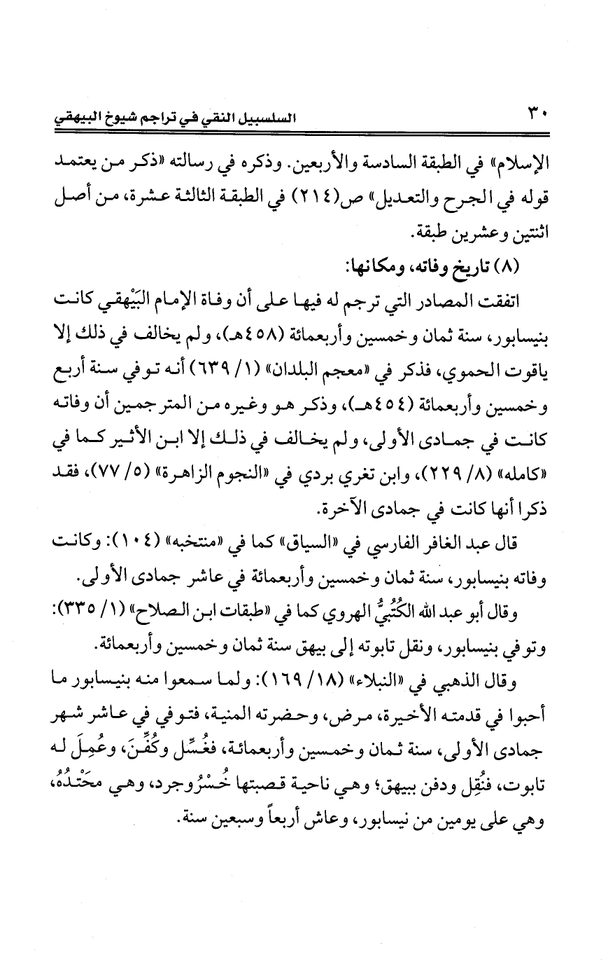 وقال أبو عبد الله الكُتُبيُّ الهروي كما في "طبقات ابن الصلاح" (1/ 335): وتوفي بنيسابور، ونقل تابوته إلى بيهق سنة ثمان وخمسين وأربعمائة.