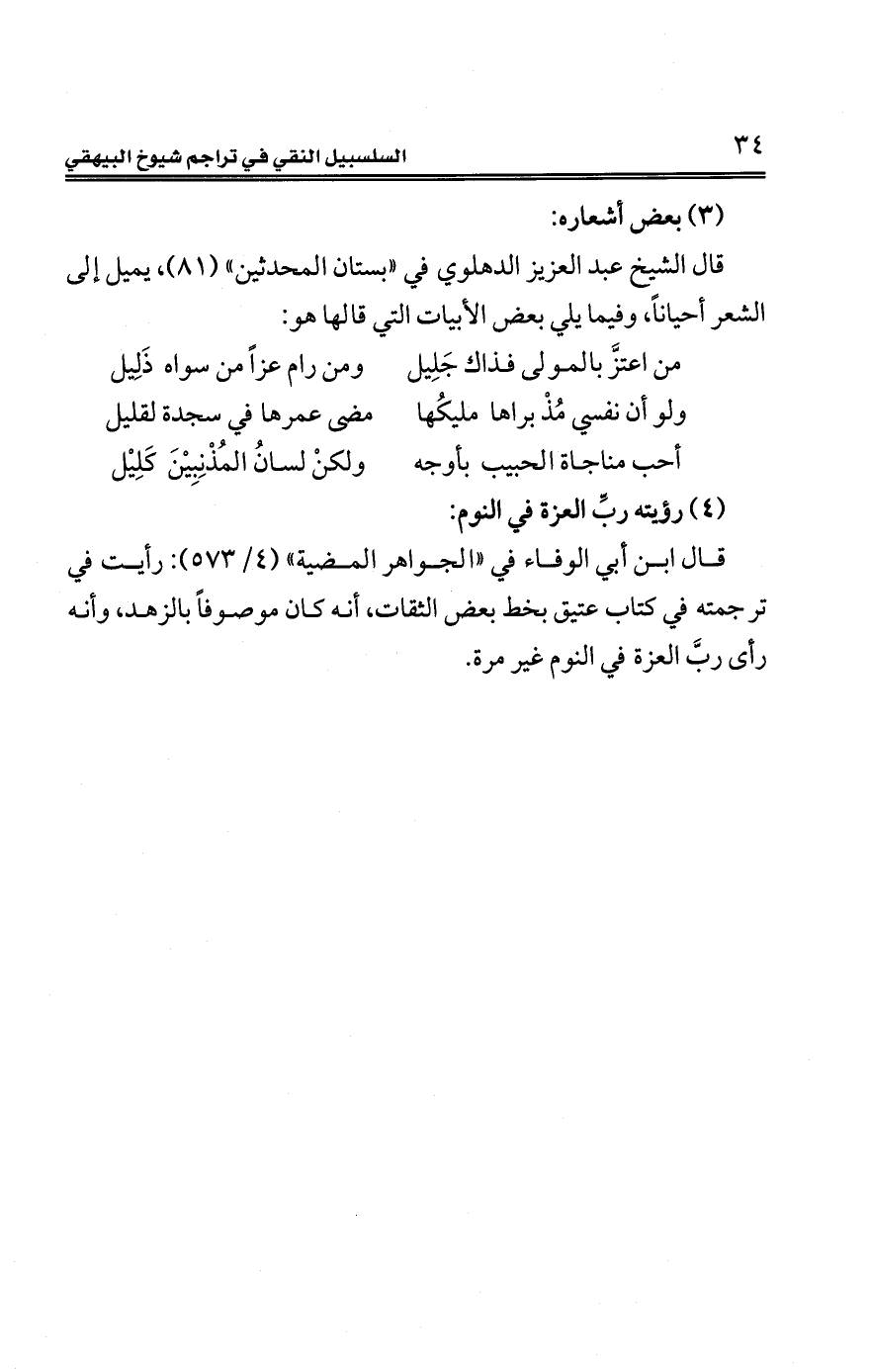 قال الشّيخ عبد العزيز الدهلوي في "بستان المحدثين" (81)، يميل إلى الشعر أحيانًا، وفيما يلي بعض الأبيات الّتي قالها هو: